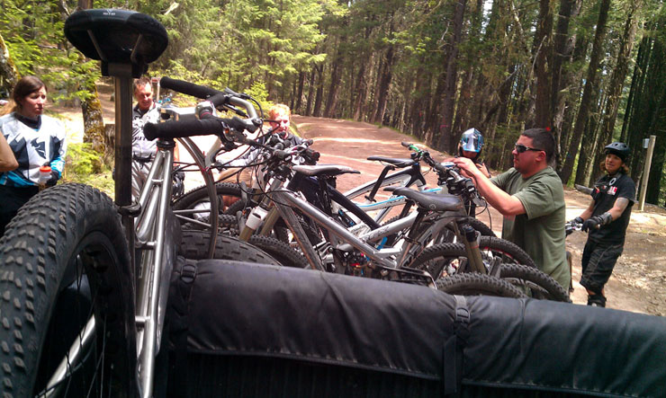 My front tire was too fat to fit in the trailer wheel racks so it rode in the truck with me. Leave a Reply Cancel replyYou must be logged in to post a comment.